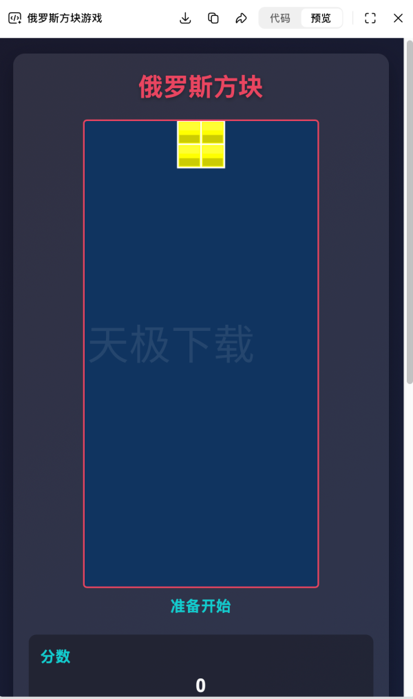 腾讯元宝一键生成的俄罗斯方块游戏用到了HTML、CSS和JavaScript,用户可以直接保存文件,并在本地通过浏览器运行。