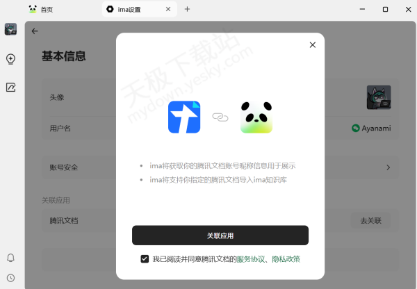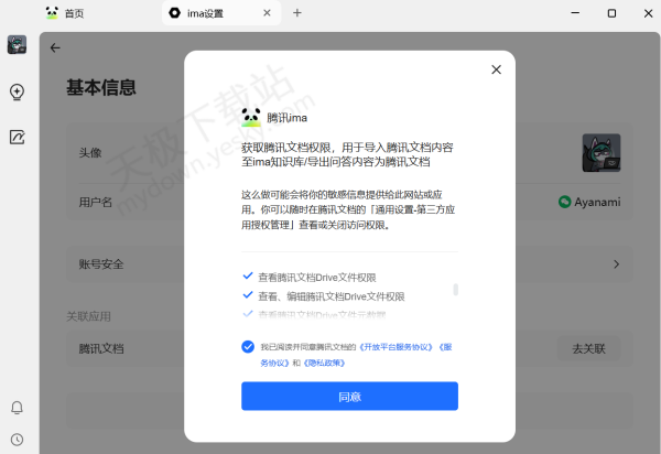 4.在弹出的新窗口中,点击【同意】按钮,即可完成关联操作。