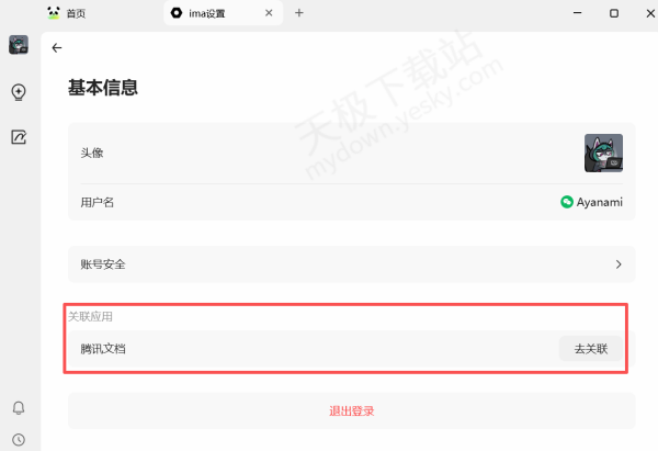 2.在个人账号页面下方找到腾讯文档模块,点击模块中的【去关联】按钮。