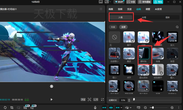 在使用一键入场动画制作时,如果效果左上方有一个钻石标签,则说明该素材需要开通SVIP才能使用,如果没有任何任何标签,则说明可以免费使用。