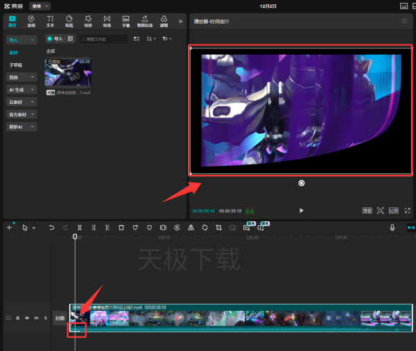 1.打开剪映,将素材导入到时间轴上。