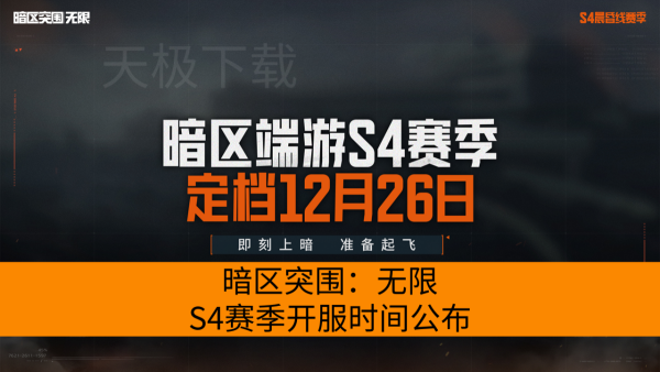 暗区突围:无限官方宣布,S4新赛季「晨昏线」正式定档12月26日!S4赛季,将是暗区端游史上更新最大的一个赛季——全新地图、全新玩法、全新枪械与全新大金悉数登场!