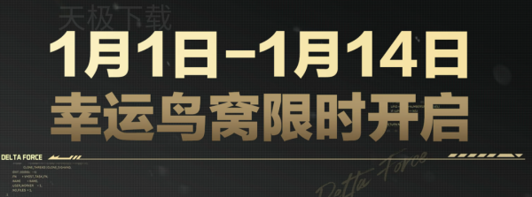 三角洲行动幸运鸟窝活动将于2026年1月1日0点正式开启,持续至2026年1月14日23:59共14天。