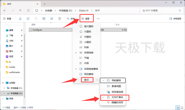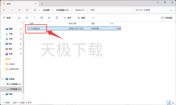 3.在【WTF】文件夹下创建一个名为【Config】的TXT文件。