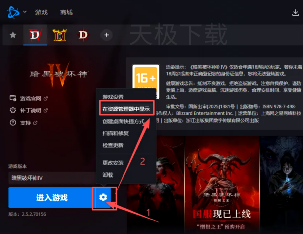 1.打开战网客户端点击【齿轮】,选择【在资源管理器中显示】。