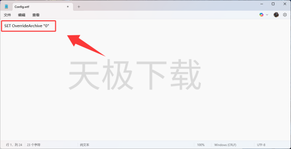 6.在记事本内输入【SET OverrideArch4e "0"】。