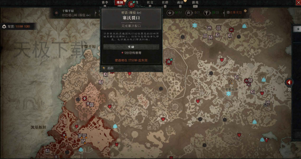 地狱狂潮区域还会刷新游荡BOSS(如S11的杜瑞尔)和各种特殊事件,玩家死亡会损失一半恸哭余烬,神秘宝箱在活动剩余15分钟时会移位,需合理规划路线以最大化收益。