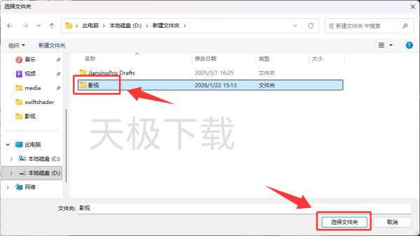 4.选择存放本地视频的文件后,点击下方的【选择文件夹】。