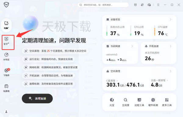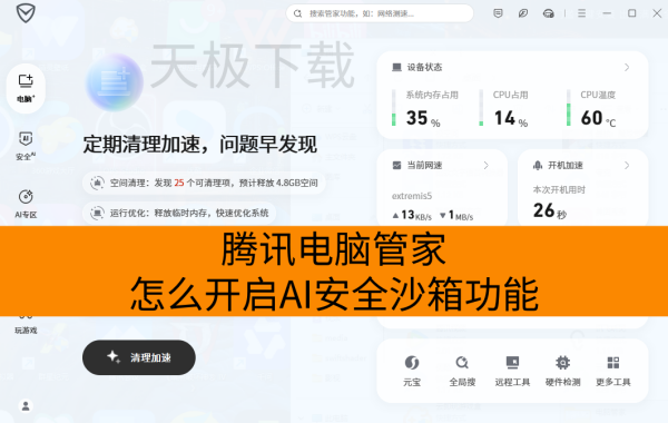 1.打开腾讯电脑管家,点击左侧的【AI安全】。