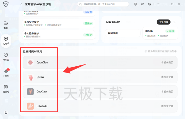 腾讯电脑管家18.0版本推出的「龙虾管家·AI安全沙箱」,目前已官方支持OpenClaw、腾讯自研QClaw、OneClaw、LobsterAI等多款主流“龙虾”类AI智能体应用,同时覆盖了市面绝大多数基于OpenClaw衍生的本地AI Agent工具,可为这些应用提供隔离运行、全流程安全防护能力。