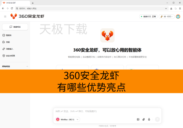 安全是产品的核心差异化优势,通过原生集成的“360龙虾卫士”,构建“以模治模”的纵深防护体系,从根源解决智能体运行安全风险。