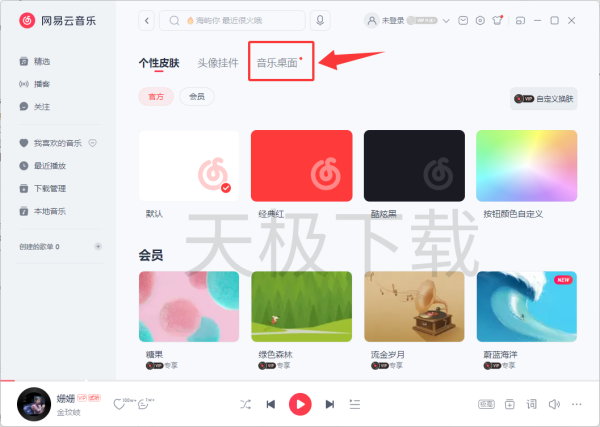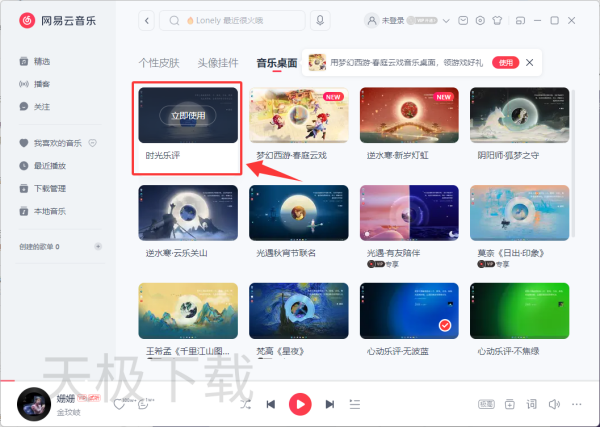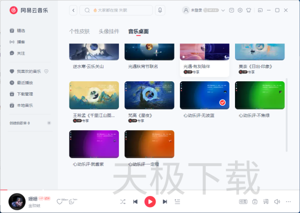 网易云音乐的音乐桌面是网易云音乐PC端推出的一款兼具桌面美化与听歌体验增强的特色功能,它以音乐为核心,将唯美定制化的壁纸主题、云村特色乐评、多风格动态播放样式与歌词实时展示深度融合,不仅提供了数十款官方原创及各类IP联动的专属主题可选,还能实现便捷的播放控制、歌曲信息展示与歌词联动,用户启用后可将其作为沉浸式播放界面或电脑桌面背景,无需频繁切换应用就能获得视觉与听觉双重沉浸的个性化听歌体验。