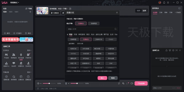 推荐语:深耕娱乐直播领域的专业电脑端开播工具,适配才艺秀场直播、语音互动连麦、多人团战直播、线下活动转播等场景,极致优化音视频互动体验,是娱乐直播与多人连麦场景的优选工具。